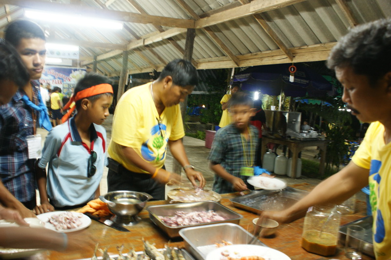 มาทะเลต้องทานอาหารทะเล คุณบุญลือ พูลนิล อดีตหัวหน้า อช.กุย ลงมือหั่นปลาหมึกสดย่างให้เด็กๆครับ