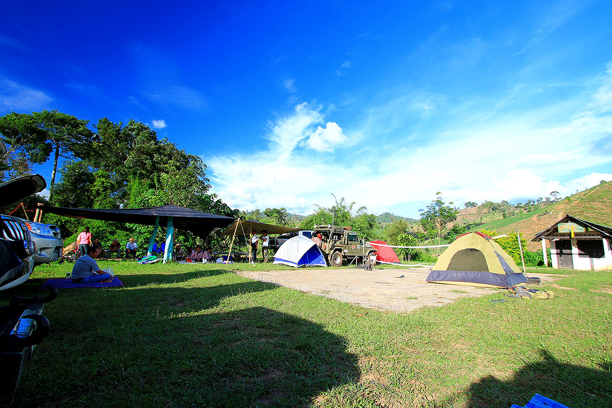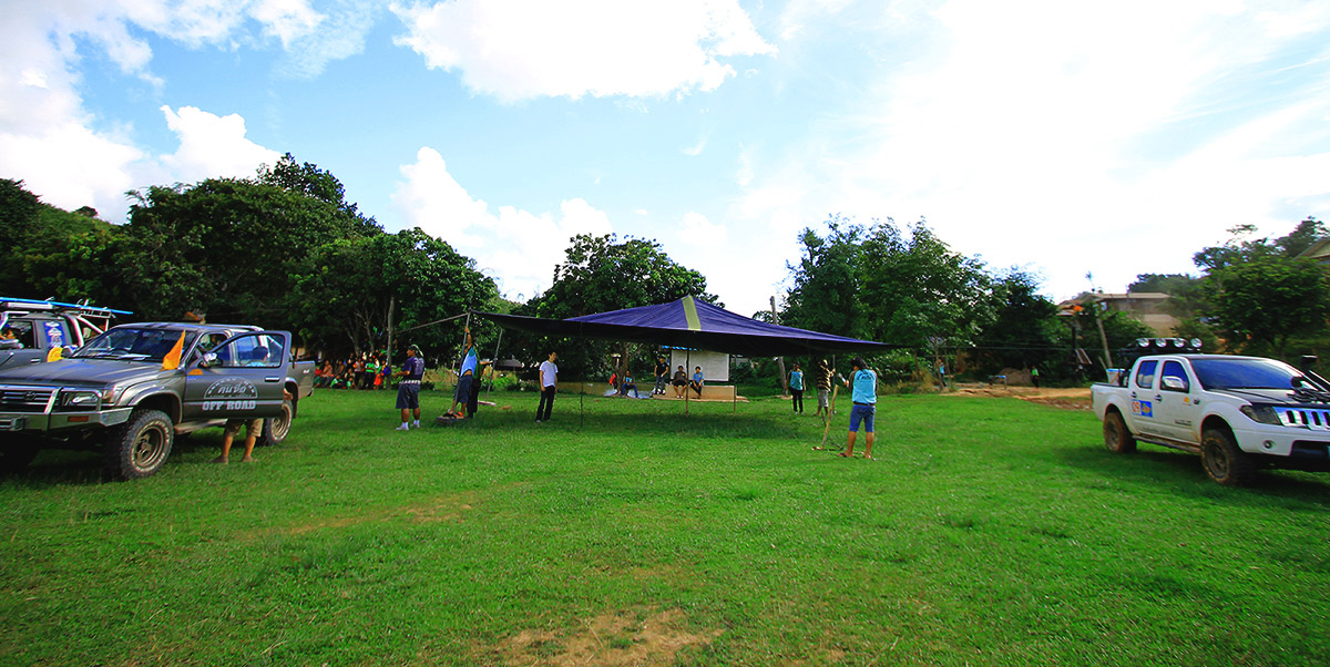 ทริปนี้เราใช้สนามฟุตบอลเป็นลานจอดรถและกางเต้นนอนกันค่ำคืนนี้ครับ