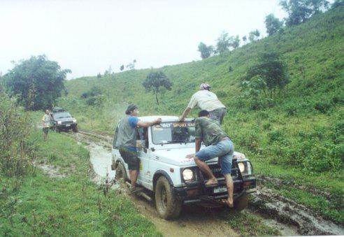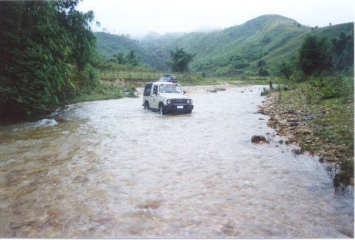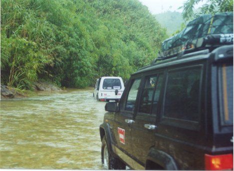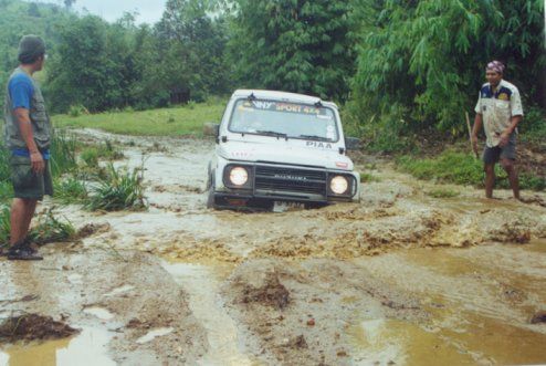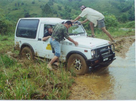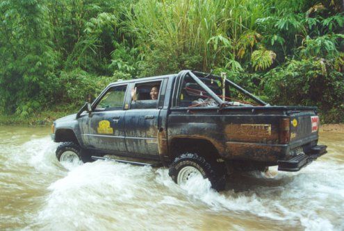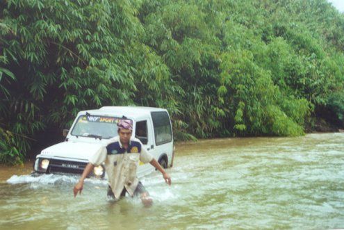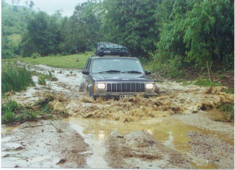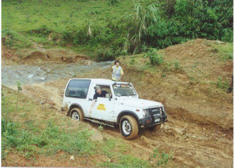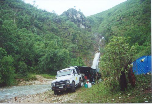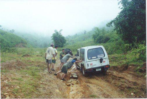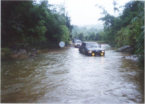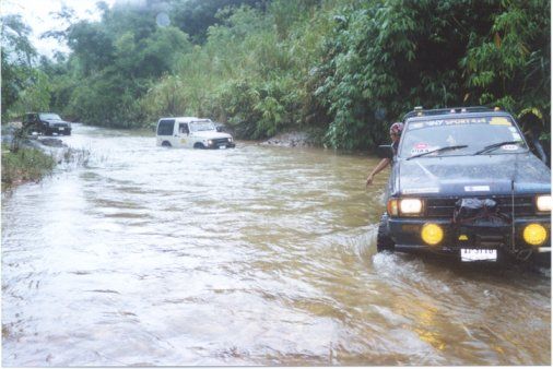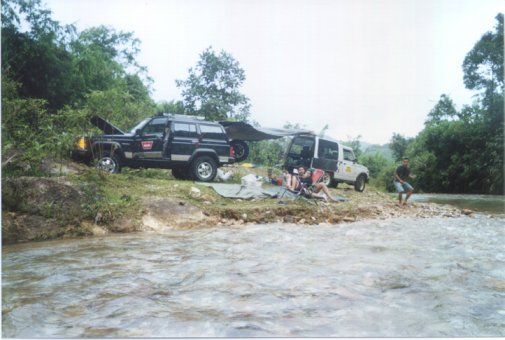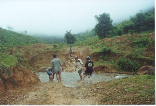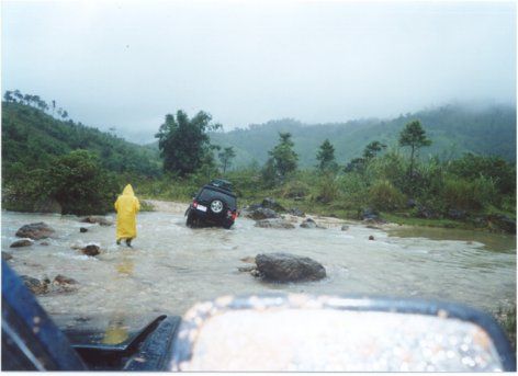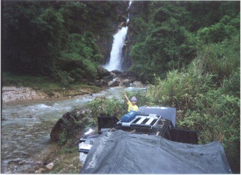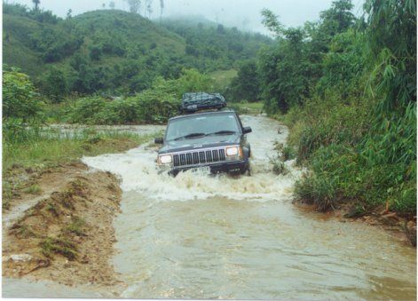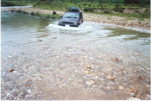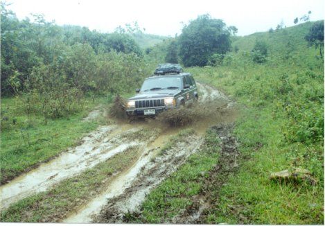 ทริปนี้ก็เป็นทริปที่4 ของกลุ่มเรา สู่น้ำตกที่แทบจะไม่ค่อยมีใครจะรู้จัก และได้เข้าไปถึง เส้นทางที่คดเคี้ยวลัดเลาะผ่านเหมืองที่สวยงามสุดผืนป่าชายแดนไทย-พม่า เลยเขต อ.ทองผาภูมิขึ้นไปอีก ซึ่งมีน้ำตกที่สวยงามซ่อนเร้นตัวอยู่ในผืนป่าแห่งนี้ นั่นคือ " น้ำตกจ๊อกกระดิ่น " ..... การเดินทางเริ่มขึ้นของวันที่ 9 ก.ย.43 เมื่อพวกเราได้นัดแนะกันล่วงหน้า และ หาข้อมูลของการเดินทางเข้าสู่ตัวน้ำตก ได้พอสมควร แล้ว ก็เริ่มเดินทางกัน แต่คราวนี้พวกเรา อยากเปลี่ยนบรรยากาศการเดินทางบ้าง จึงตกลงกับว่าเราจะลุยกันช่วงกลางคืนดีกว่า น่าจะสนุกไปอีก รูปแบบ แล้วก็ตกลงกันตามนั้น ....ล้อหมุนออกจากศรีราชาของเย็นวันนั้นประมาณบ่าย 3 โมงเย็นถึงมหาชัย เดินทางผ่านอำเภอบ้านแพ้ว ออกไปถึง จ.นครปฐม มุ่งตรงเข้าสู่ตัวเมืองกาญจนบุรี คราวนี้เราไปกัน 3 คัน เพราะมีบางส่วนของสมาชิกเราต้องเดินทางไปสำรวจอีกผืนป่าหนึ่ง ที่ จ.นครนายก ....เราเดินทางมาถึงตัวเมืองกาญฯประมาณหกโมงเย็น แวะเติมพลังให้กับยานพหนะทุกคัน และ เดินทาง ต่อโดยใช้เส้นทางหลวง 323 มุ่งสู่ อ.ทองผาภูมิ ระยะทางช่วงนี้ยาวไกลพอสมควร จนเรามาถึง ตลาดทองผาภูมิราวสองทุ่มเศษ แวะพักรถเพื่อจับจ่าย ข้าวปลาอาหาร เตรียมสำหรับที่หมายคืนนี้ ทั้งคนทั้งรถทั้งเสบียง เตรียมพร้อมกันอีกครั้ง เดินทางต่อสู่เหมืองปิล๊อก จากตลาดทองผาภูมิมาไม่นานจะเจอสามแยก เลี้ยวซ้ายจะบอก เส้นทางสู่เหมืองปิล๊อกประมาณระยะทาง 64 กิโลเมตร แต่เส้นทางนี้ต้องใช้ความชำนาญ และ ความระมัดระวังสูงมาก เนื่องจากเป็นเส้นทางวิ่งตามไหล่เขาตลอด ทางก็แคบ และ ชันมาก สองฟากฝั่งเป็นเขาและหุบเหวตลอดเส้นทาง เรียกว่าห้ามพลาดโดยเด็ดขาด จนลัดเลาะมาถึงตัวเหมืองปิล๊อกโดยผ่านหมู่บ้านอีต่อง เราไปถึงที่นั้นประมาณราวห้าทุ่ม บรรยากาศภายในหมู่บ้านเหมือนหมู่บ้านร้างยังไงยังงันเลยครับ ประกอบกับแสงสว่างสีเหลืองนวลของสปอร์ทไลท์ ของตัวเหมือง ทำให้ดูราวกับหมู่บ้านผีสิงเลยทีเดียว เราไม่พบผู้คนแม้แต่คนเดียวเลยที่เหมืองแห่งนี้ พวกเราคงเข้ามาดึกมากเกินไป จนผ่านมาถึงสุดเขตที่แสงสว่างจากตัวเหมืองจะส่องมาถึงเรา ก็ได้พบทหารยาม 2 นาย จึงถามเส้นทางไปสู่น้ำตกจ๊อกกระดิ่ง ได้คำตอบว่า เส้นทางเข้าไปประมาณ 8-10 กิโลเมตรค่อนข้างชัน และเดินทางตามไหล่เขา เลาะลำธารไปตลอด "แต่ผมยังไม่เคยเห็นใครเข้าไปช่วงกลางคืนเลยนะครับ พวกคุณน่าจะเข้าไปตอนเช้าดีกว่า มันอันตราย" เป็นคำเตือนจากทหารยามเฝ้าสถานีส่งก๊าซ ผมกลับบาปรึกษากับสมาชิกในกลุ่มว่า เราจะเข้าไปเลย ห
