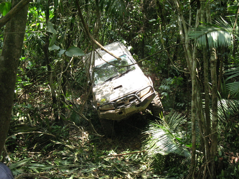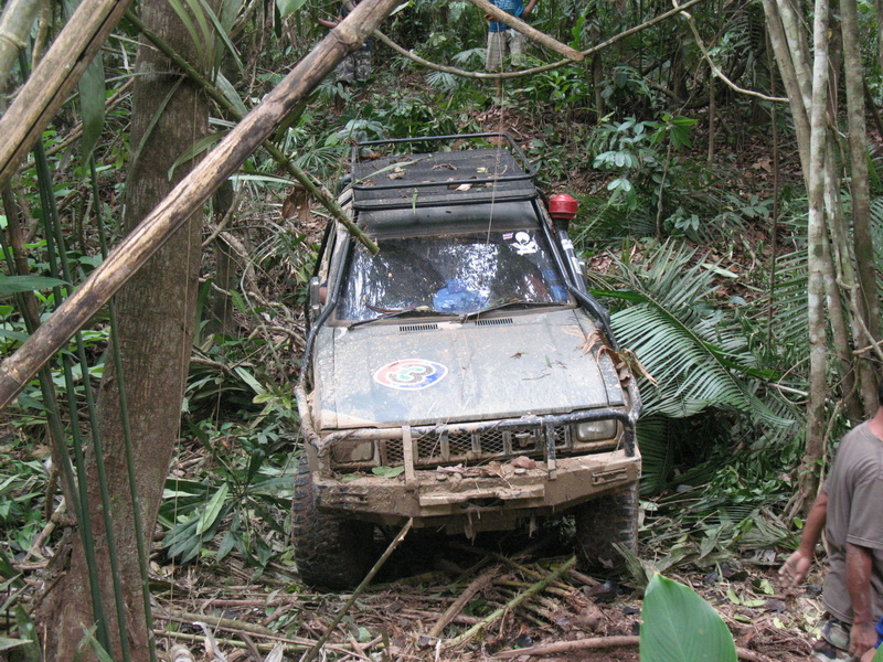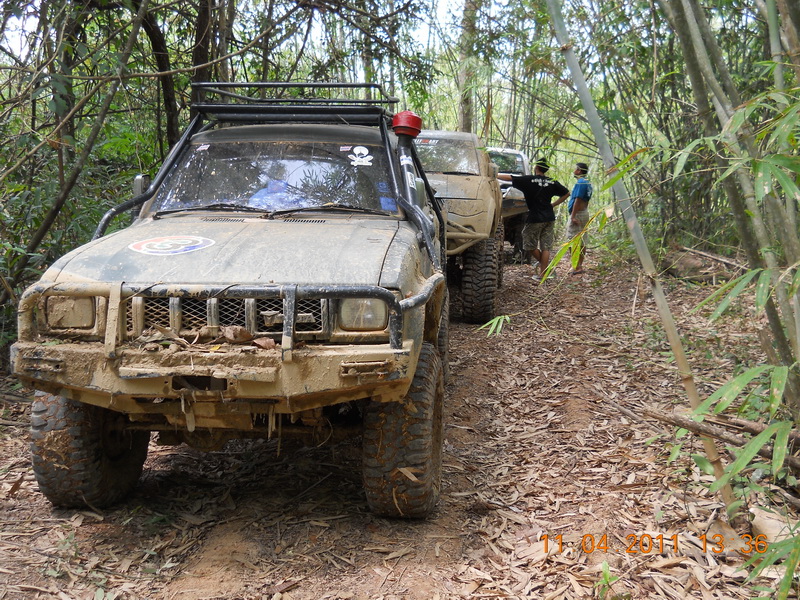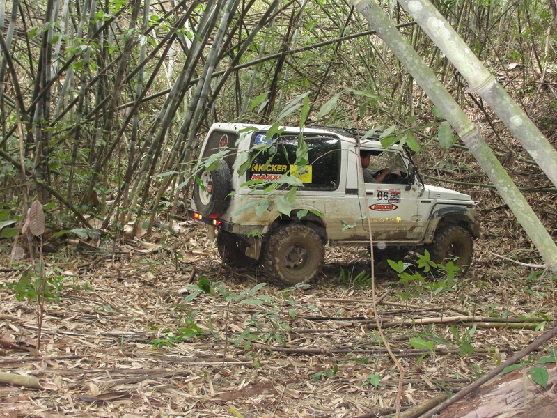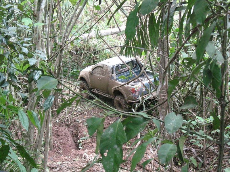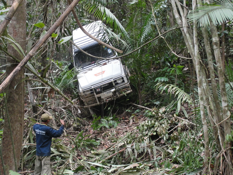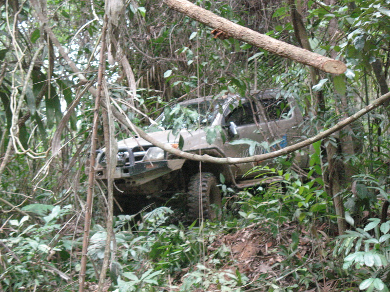 พ้นหลุม ออกไลน์ซ้าย ชิดขวาสุดเบียดต้นไม้ไว้ ยังไม่พ้นต้นไม้ที่ล้มอยู่...กองเชียร์ยืนลุ้น..ประมาณว่า แร็กหลังคา กลายเป็นแหลกไปแล้ว....