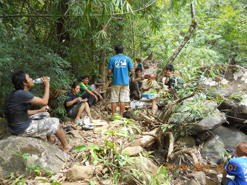 เราขึ้นมาจากหลุมสุดท้าย ตอนเที่ยงเศษๆ แวะจอดลงไปรับมื้อเที่ยงที่น้ำตกด้านล่าง
