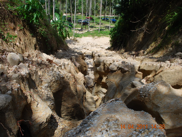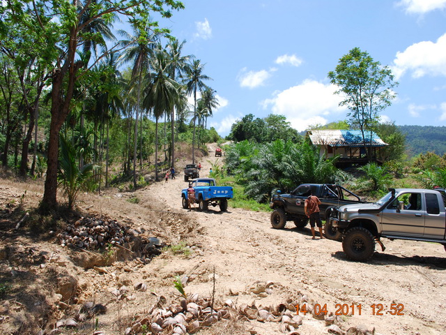 เห็นเส้นทางแล้ว พวกเราเลยเปลี่ยนทางขึ้น ผู้ใหญ่บอกว่ามันอันตรายเพราะอาจจะมีดินทรุดตัว ก้อนหิน ก้อนดิน อาจไหลมาทับรถยนต์ได้