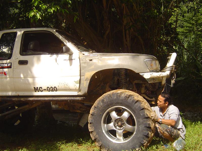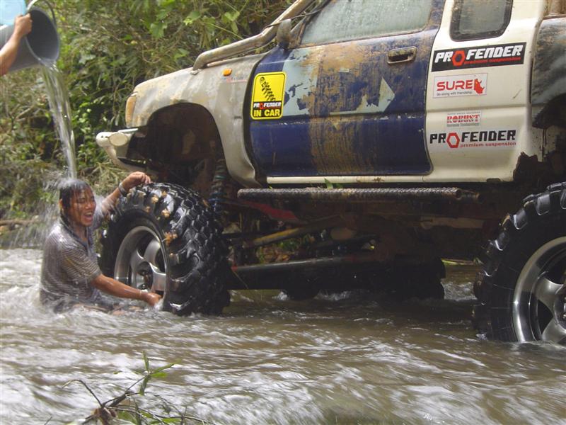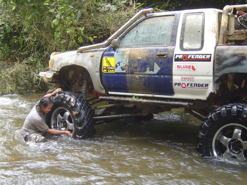 พี่ป้อมบอกเดี๋ยวเราจะขับรถขึ้นไปตามร่องน้ำขึ้นไปเรื่อย ๆ จนถึงต้นน้ำ ก็เลยต้องปล่อยลมออกครับ
