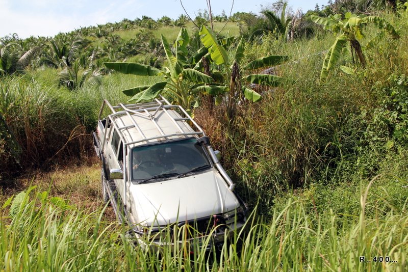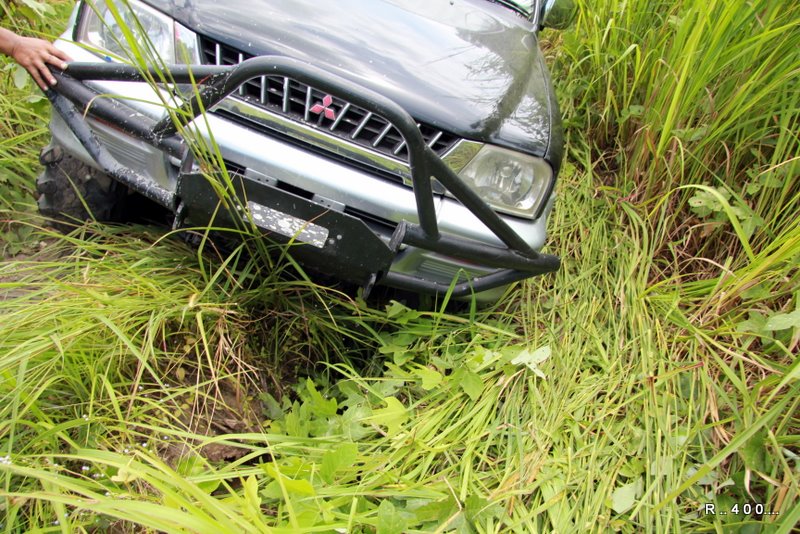 เนื่องจากยางของรถปีกนก ไม่มีดอกยาง เลยหญ้า ตกลงไปในล่องน้ำข้างทาง