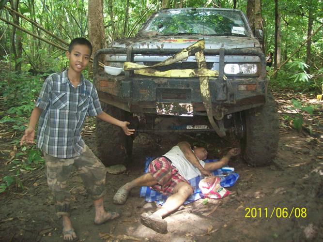 ได้ข่าวว่าบ่อนี้ กว่าจะเอากันขึ้น 2 ชั่วโมงเลย เห็นแล้วก็สมควร น้าเอ๋ เล่นจมไปครึ่งคันแบบนี้ นี่เอง