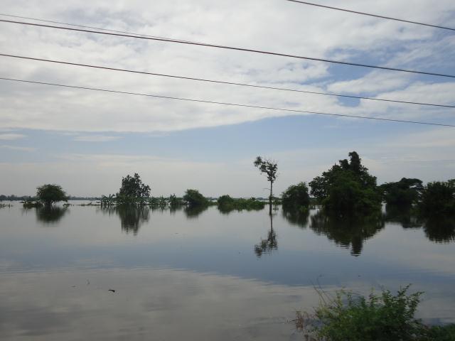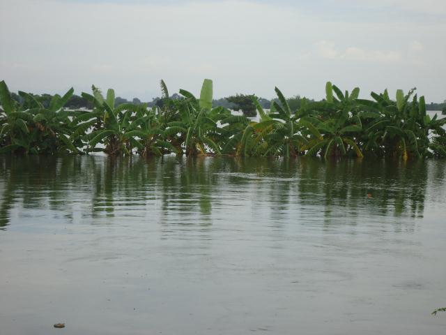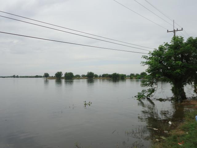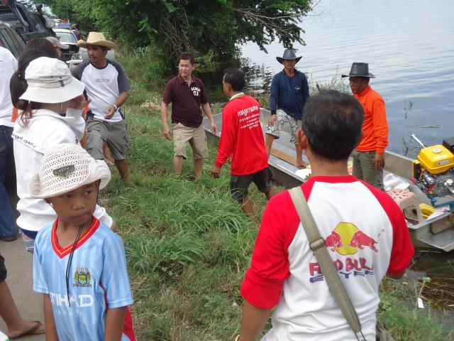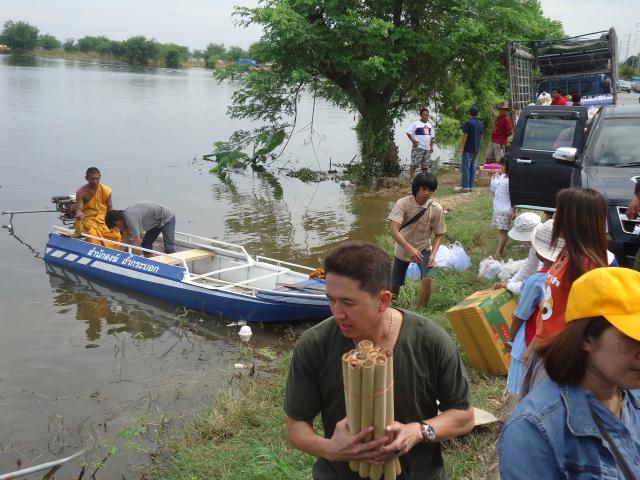 จอดเพื่อประสานงานกับทางชาวบ้านในท้องที่เพื่อขอเรือบรรทุกสิ่งของเข้าไปส่งให้ถึงมือผู้ที่ได้รับความเดือดร้อน