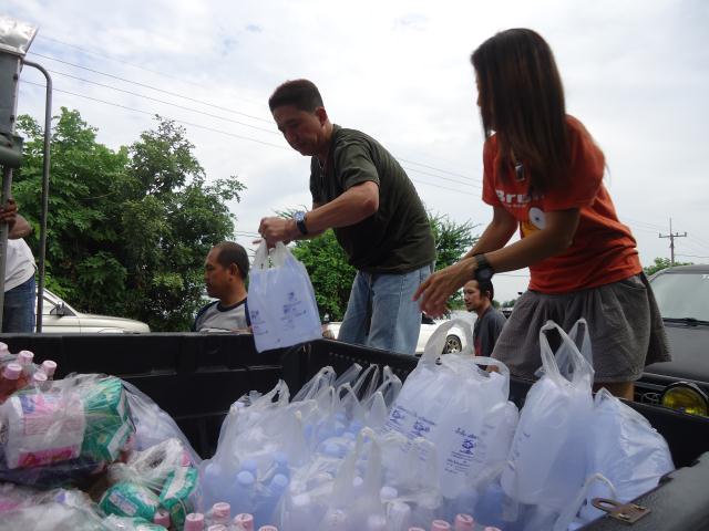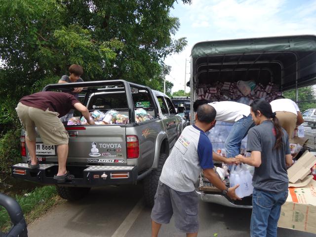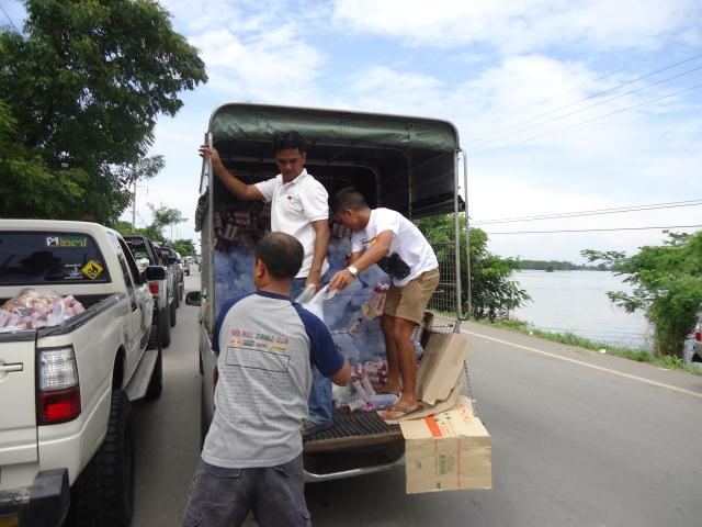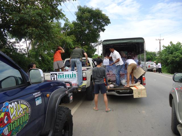 บางส่วนขนย้ายสิ่งของ น้ำดื่ม อาหารแห้ง เพื่อนำไปมอบให้ชาวบ้านด้านใน