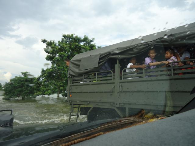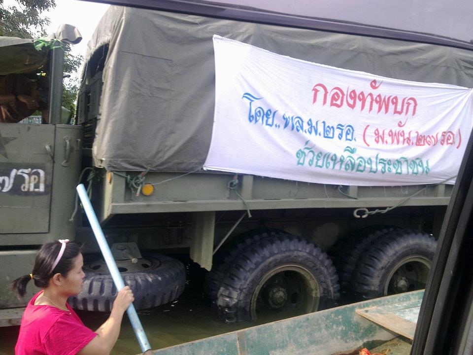 รถทหารที่เข้ามาช่วยขนย้ายชาวบ้านในละแวกนี้