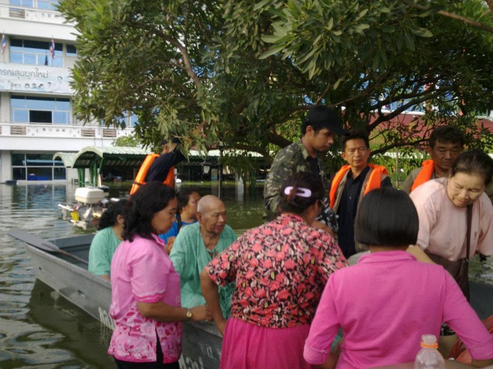 ในการช่วยขนย้ายชาวบ้าน คนชรา และคนป่วยที่ติดอยู่ใน รพ.พระนครศรีอยุธยา และบริเวณพื้นที่ใกล้เคียง