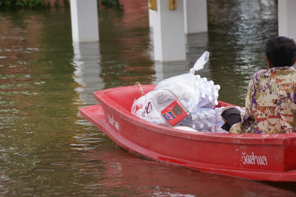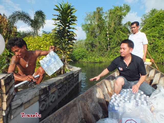 กลับมาเรื่องน้ำท่วมต่อครับ นำน้ำดื่มไปถวายพระในท้องที่ธัญญบุรีครับ