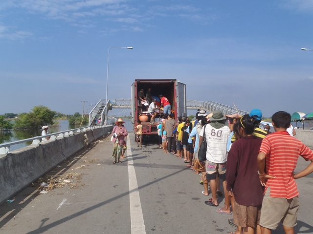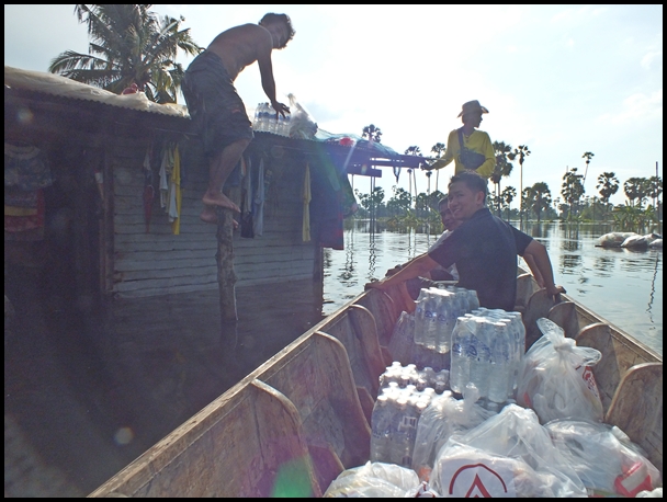 .....ในทุกๆ พื้นที่ของการส่งมอบสิ่งของช่วยเหลือผู้ประสบภัย เห็นได้ชัดถึงความลำบากของพี่น้องประชาชน หลายชีวิตยื้อแย่งสิ่งของบริจาค หลายชีวิตยังคงติดอยู่กับที่พักอาศัย บางครอบครัวมีทั้งเด็กเล็ก และผู้สูงอายุ การที่จะออกไปขอรับความช่วยเหลือจากภายนอก จึงเป็นเรื่องลำบากมาก จากระดับน้ำที่ท่วมสูง บางพื้นที่ระดับน้ำสูงจนท่วมหัวและยังส่งกลิ่นเห็นอย่างรุนแรง อาหาร น้ำดื่มและเครื่องยังชีพจึงมีความจำเป็นอย่างมาก และเมื่อมีผู้นำสิ่งเหล่านี้ส่งให้ถึงมือ รอยยิ้มแห่งความดีใจ ก็ได้ช่วยคลายความกังวล.....ว่าเราไม่ได้อยู่อย่างโดดเดี่ยวและไม่ถูกทอดทิ้งจากพี่น้องไทย แม้จะเป็นช่วงเวลาของความแตกแยกก็ตาม