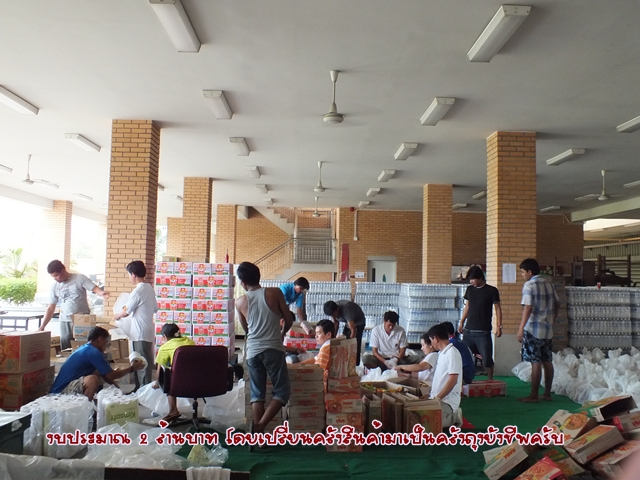 ได้นำไปมอบผ่าน spring News TV เพื่อช่วยส่งมอบผ่านไปให้ผู้ประสบภัยบางทีเราก้เข้าไปไม่ถึงครับ เราผลิตในช่วงที่กำลังขาดแคลนน้ำดื่มครับ