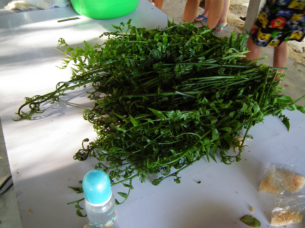 กลับสู่ที่พักทำอาหารเย็นที่เรียบง่าย ผัดผักกูดที่แวะเก็บมาระหว่างล่องแพ