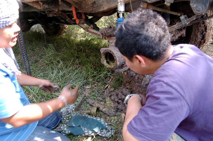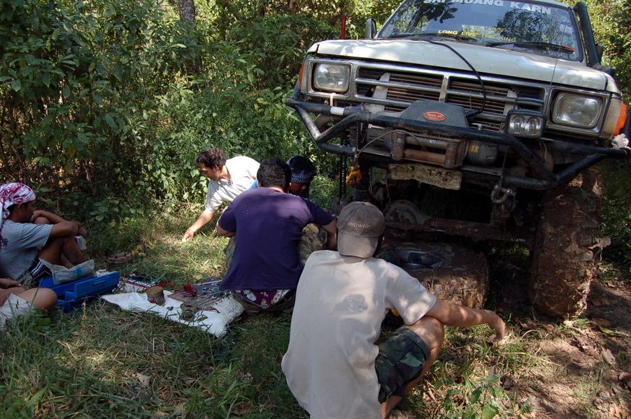 งานเข้าพี่นันท์ ต้องถอดดูกันกลางป่าครับ ต้องขอบคุณพี่นันท์ที่ช่วยดูแลพวกเราเป็นอย่างดี สรุปครับตระกร้อเพลาขับหน้าแตกกระจาย