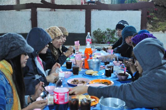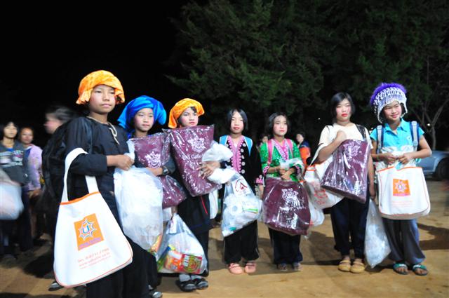 ถึงแล้วก็ขึ้นดอยเลย เตรียมแจกผ้าห่มในคืนแรกครับ