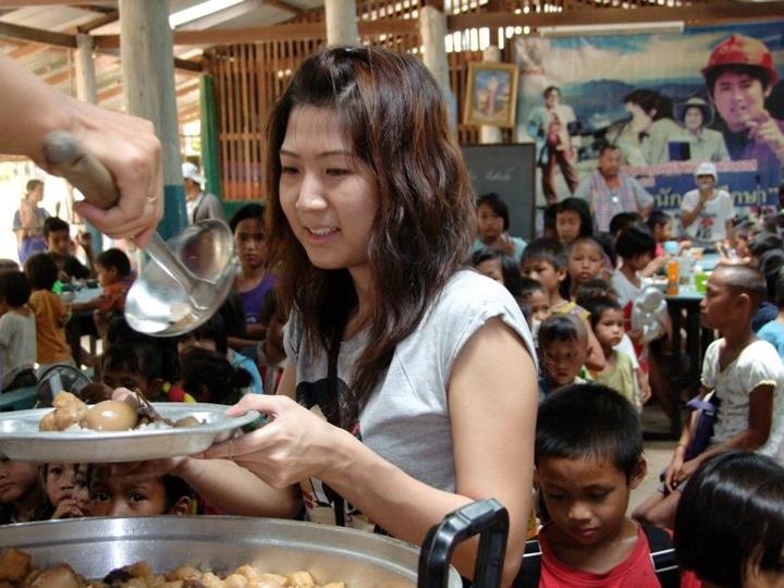 สาวๆออฟฟิตบ.ทีมฯคอยบรีการช่วยตักอาหารให้น้องๆอิ่มแป้กันไปเลยครับ
