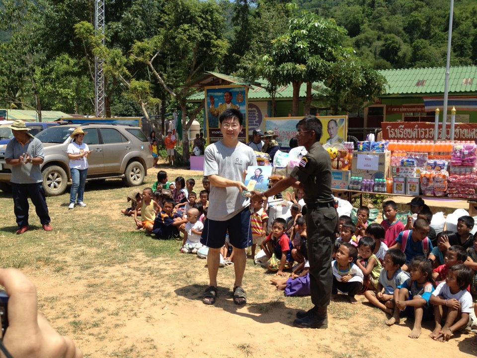 กรรมการผู้จัดการบริษัท ทีมซิสเต็มเอ้นจิเนียริ่ง จำกัด.เป็นผู้ส่งมอบสิ่งของให้ทางรร.ตชด.บ้านโป่งลึกครับ