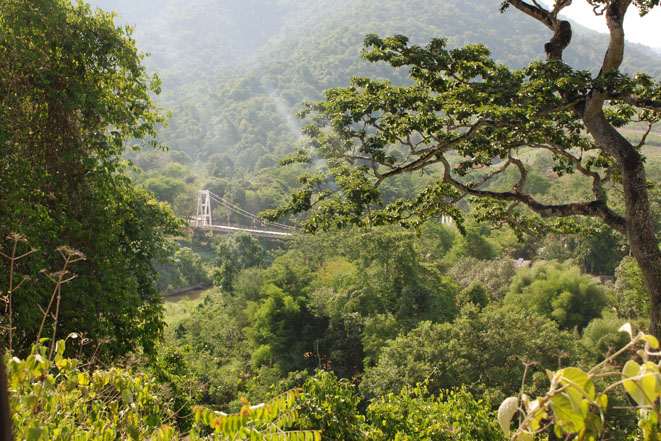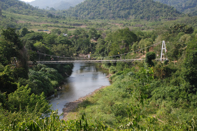สะพานสลิงเหล็กข้ามไปยังบ้านกลอยชาวกะหร่างสร้างเมื่อกลางปี2554ครับ