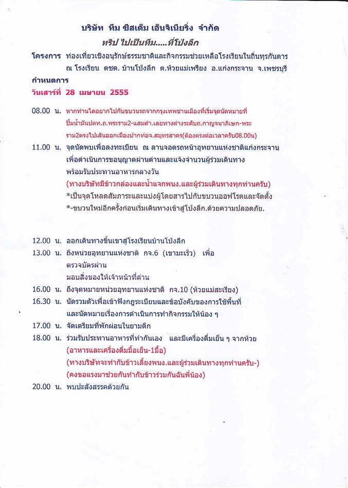 เชิญชวนเพื่อนๆชาวตนกระทิงและเพื่อนๆชาวออฟโรดทุกท่านไปร่วมทำกิจกรรมอาสา(ปีที่2.)ให้กับรร.ตชด.บ.โป่งลึก ต.ห้วยแม่เพรียง อ.แก่งกระจาน จ.เพชรบุรีอีกครั้ง.มีโครงการกำหนดไปกันวันที่ 5-7พฤษภาคม2555ครับและเดินทางไปสำรวจข้อมูลกับครูตชด.วันเสาร์ที่24มีนาคม2555นี้ครับ.งานนี้ทางผู้บริหารของบริษัท ทีมซีสเต็มเอ็นจิเนียริ่ง จก.ได้จัดพนักงานไปร่วมงานดังกล่าวด้วย. หวังว่าเพื่อนๆทุกท่านคงได้ไปร่วมทำกิจกรรมในครั้งนี้อีกครั้งนะครับขอขอบพระคุณล่วงหน้า.โทร.081-777-2832