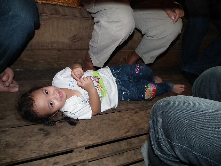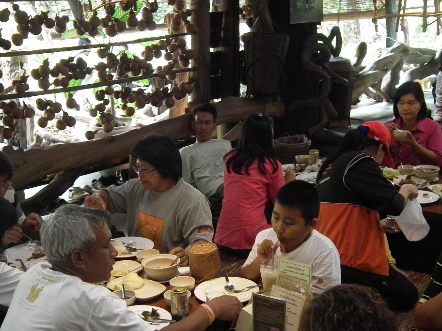 โต๊ะอาหารเขาทำเป็นแบบหลุม ให้เราห้อยขาลงไป พอดีเลยไอ้ตัวน้อยกินไปเล่นไป