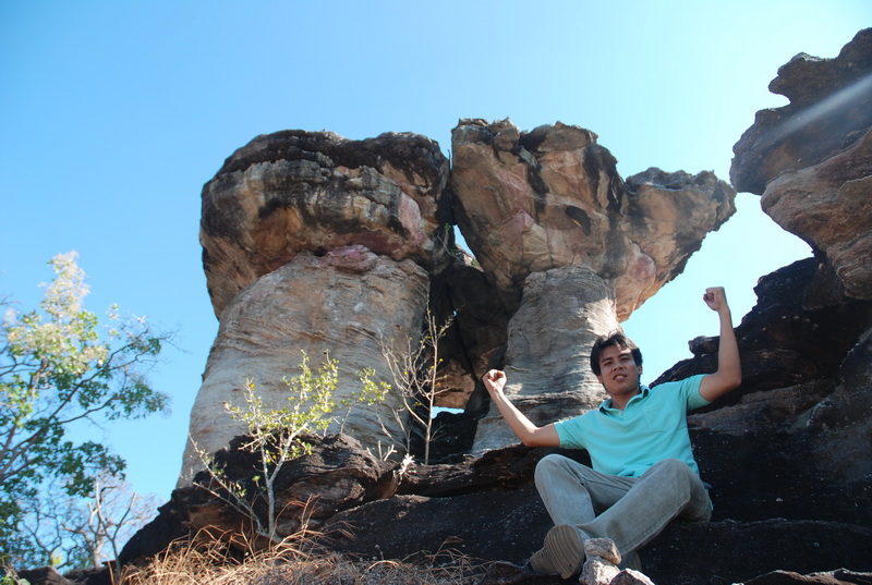 เสาเฉลียงที่บ้านผาซันเป็นสเาที่ใหญที่ในจังหวัดอุบล ส่วนที่อยู่ผาชนะไดและอยู่ที่ผาแต้มจะเล็กกว่าลองดูเลยครับ