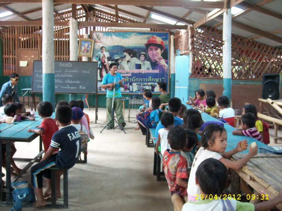 เข้ามาที่โรงเรียน ซึ่งเราจะทำการแจกของต่างๆ และเลี้ยงอาหารน้องๆ