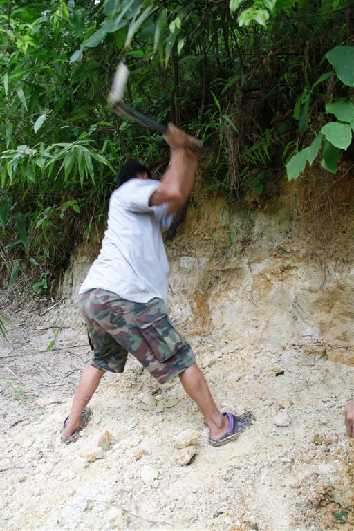 จึงรีบคว้าจอบมาฟันแทน