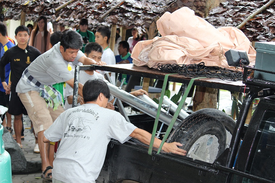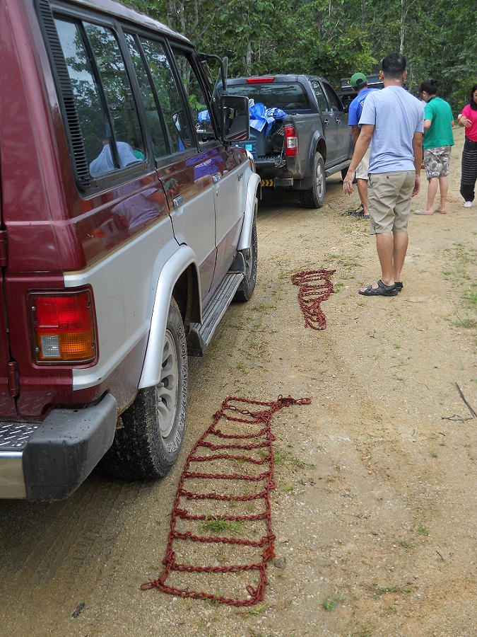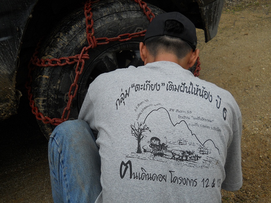 ฝั่งรถเดิมๆ สามคัน เริ่มขนชุดแต่งออกมา....มันคือ "โซ่" พันล้อ