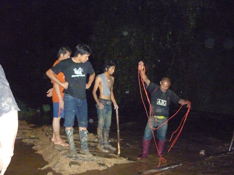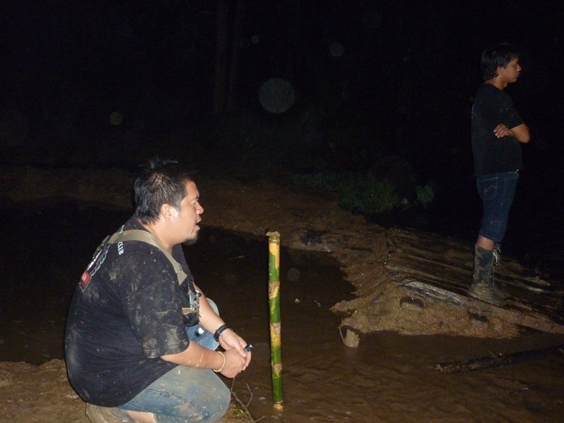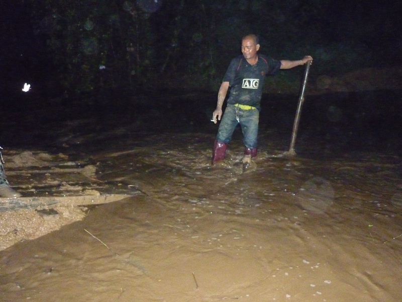 พอมาถึงสะพานซัก3ทุ่มกว่าๆ น้ำยังไม่มากนัก รถพี่ชาข้ามห้วยไปได้คันหนึ่ง ซักพักไม่ถึง20นาทีน้ำก็มาเกือบมิดสะพาน