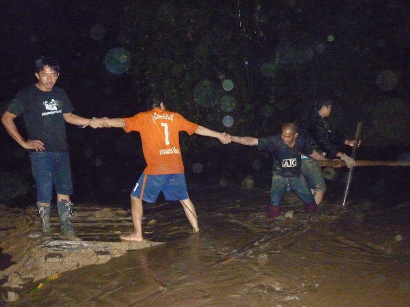 กะว่าไปเช้ากลับเย็น เเต่ขากลับเจอน้ำป่าเต็มสะพานเลย นอนรอยันเช้า