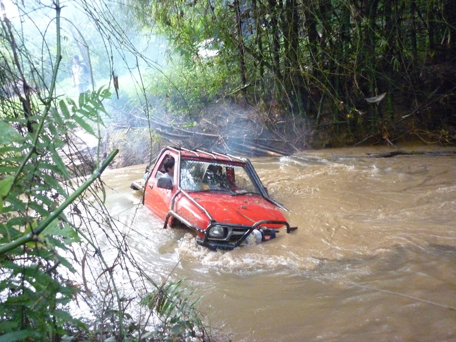 6โมงเช้าน้ำลดเเล้วก็ข้ามกันเลยครับ บ้างคันข้ามสะพาน บางคันลงน้ำจะได้ไม่เสียเวลาครับ