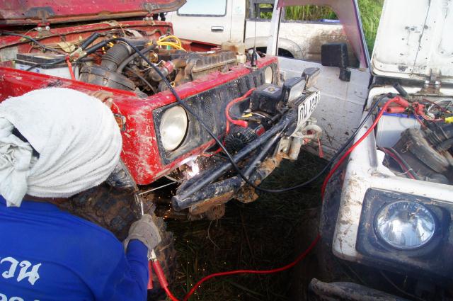 น็อตยึดกันชนขาดเราเลยเชื่อมติดแชสซีแทนเพื่อแก้าปัญหาเฉพาะหน้าก่อน
