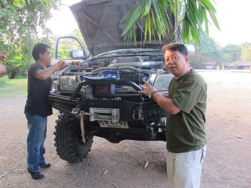 ที่กำลังยืนซ่อมรถอยู่เขาหละแสววง แสงตะวัน รถพังตั้งแต่ยังไม่่เข้าเลยครับ ไดไม่ชาร์ทเลยต้องจอด