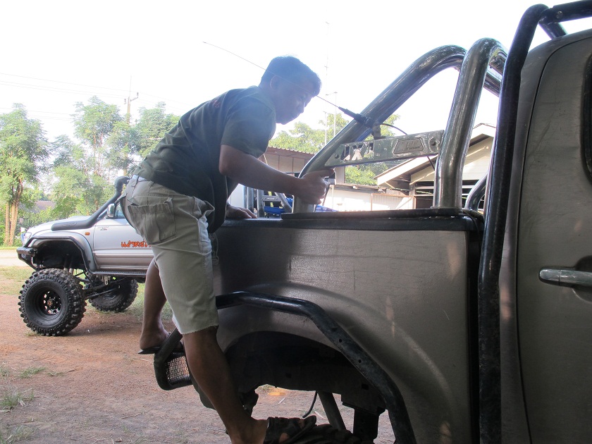 คนนี้ก็ไม่แพ้กันชอบหาความลำบากให้เพื่อน เกียรติ แสงตะวันหรือชายกลาง ในภาพกำลังปีนไปลักแบตผมครับ