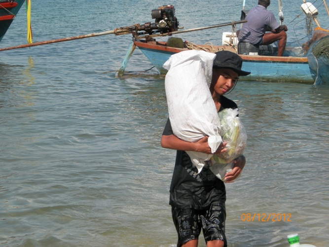 ขนเสบียงลงเรือ กนกฝากบอกเพื่อนๆลงรูปให้ดูแล้วนะ