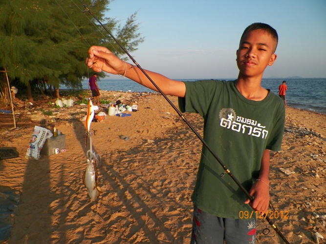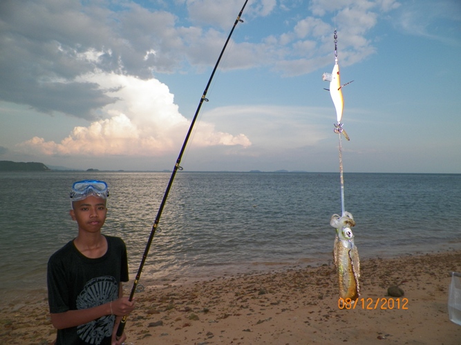 บ่ายนี้เด็กๆได้หมึกมา7ตัว เลยบอกให้เปลี่ยนเบ็ดตกปลาเก๋าบ้างครับ