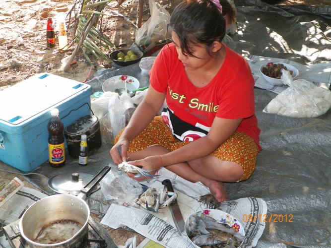 ได้ปูมาแล้วบอกให้เด็กกลับที่พักมากินข้าว