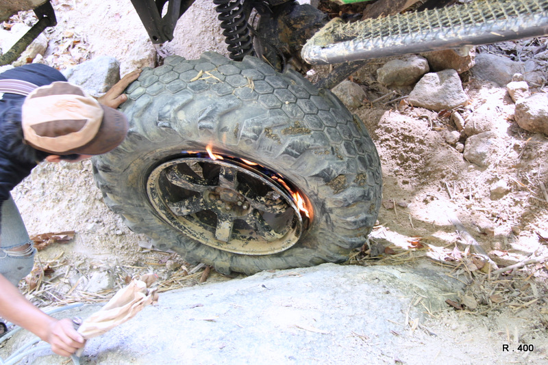 ราดบินซิน จุดไฟเลย แล้วเอาไม้เคาะๆๆๆๆๆๆๆยางเข้า ระเบิดปึงออกมาเลย