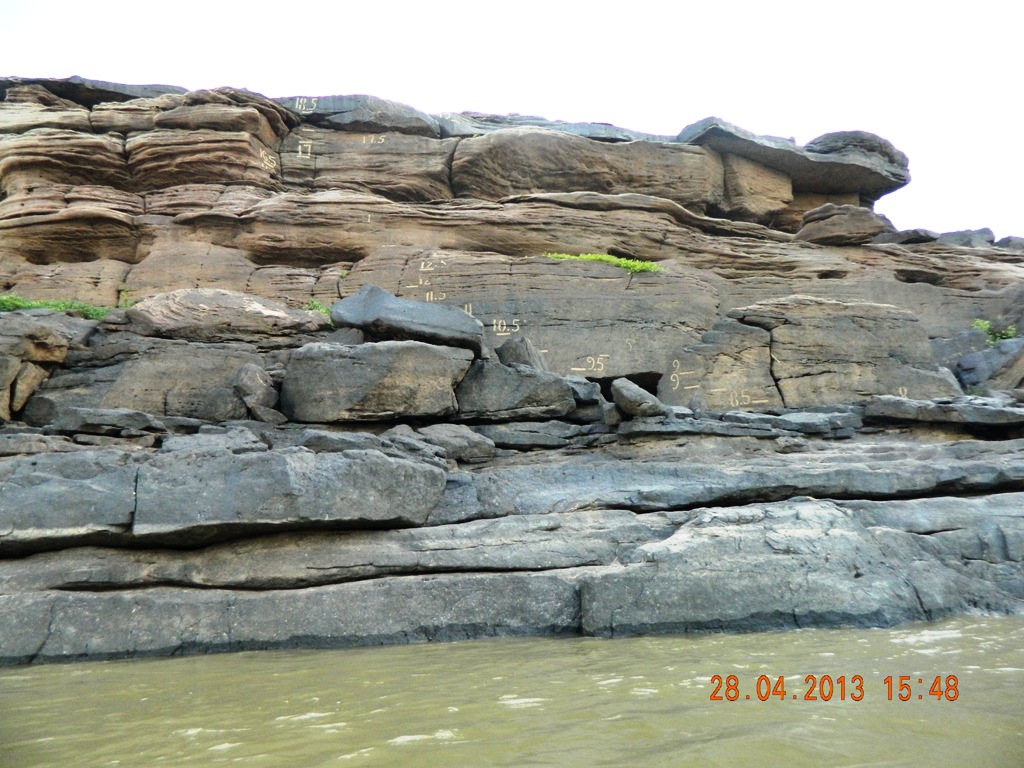 ตัวเลขวัดระดับความลึกของแม่น้ำโขง ที่ทหารฝรั่งเศสทำไว้
