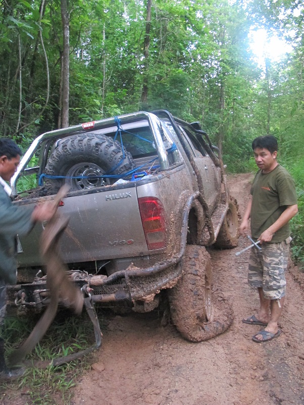 รุ่งเช้าที่บ้านห้วยเขย่ง สำรวจความเสียหายรถกัน