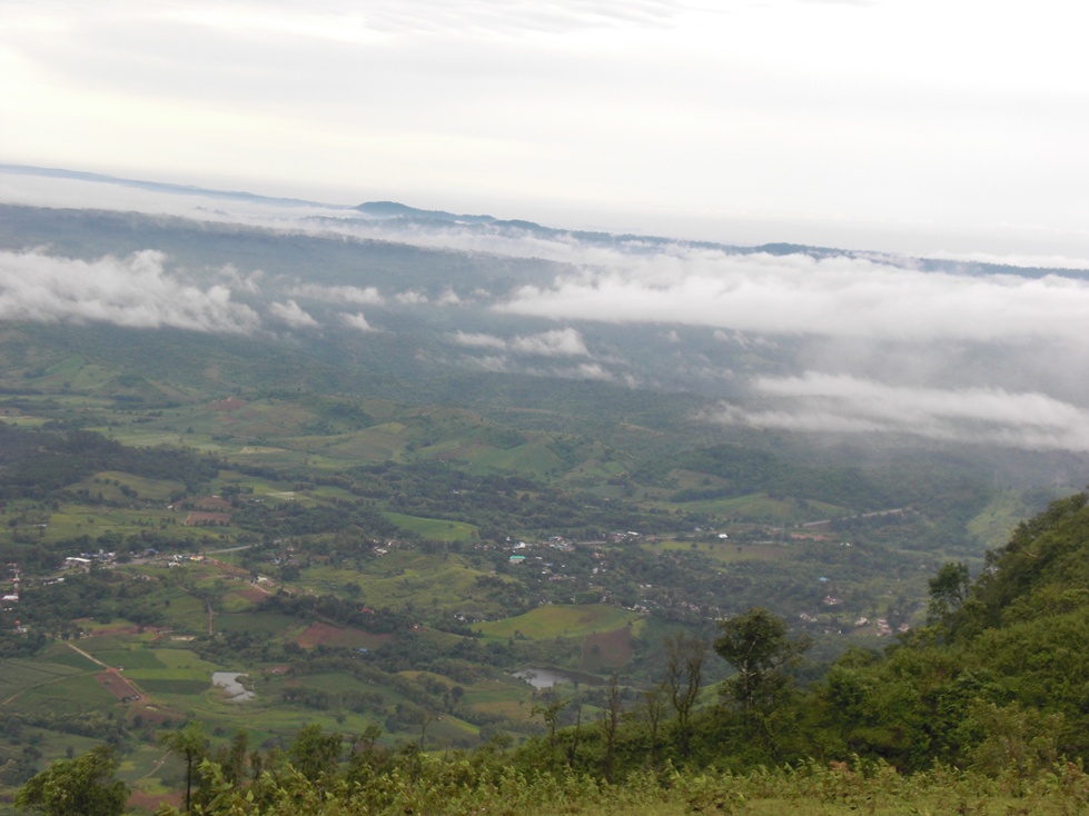 ถ่ายจากบนผาตัด มาเห็นวัดผาซ้อนแก้ว สวยมาก