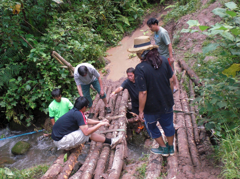 พวกเรารีบไปหาไม้มาเปลี่ยนที่ผุ แล้วรวมกำลังสร้างสะพานใหม่ เผื่อผู้อื่นจะได้ใช้เส้นทางนี้จะได้แข็งแรงต่อไป เราเสียเวลากับสะพานนี้มาชั่วโมงกว่า แล้วมันก็สำเร็จ