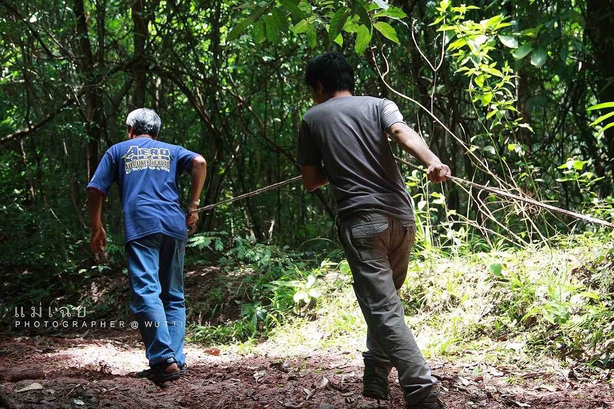 พอผ่านไปได้ระยะ เราก็มาถึงลำห้วยใหญ่ใจกลางป่า แต่ปีนี้น้ำแทบไม่มีเลย ปีที่แล้วหาทางแทบไม่เจอ น้ำเต็มห้วยไปหมด แต่ก็ดีไปอีกอย่างไม่อันตราย