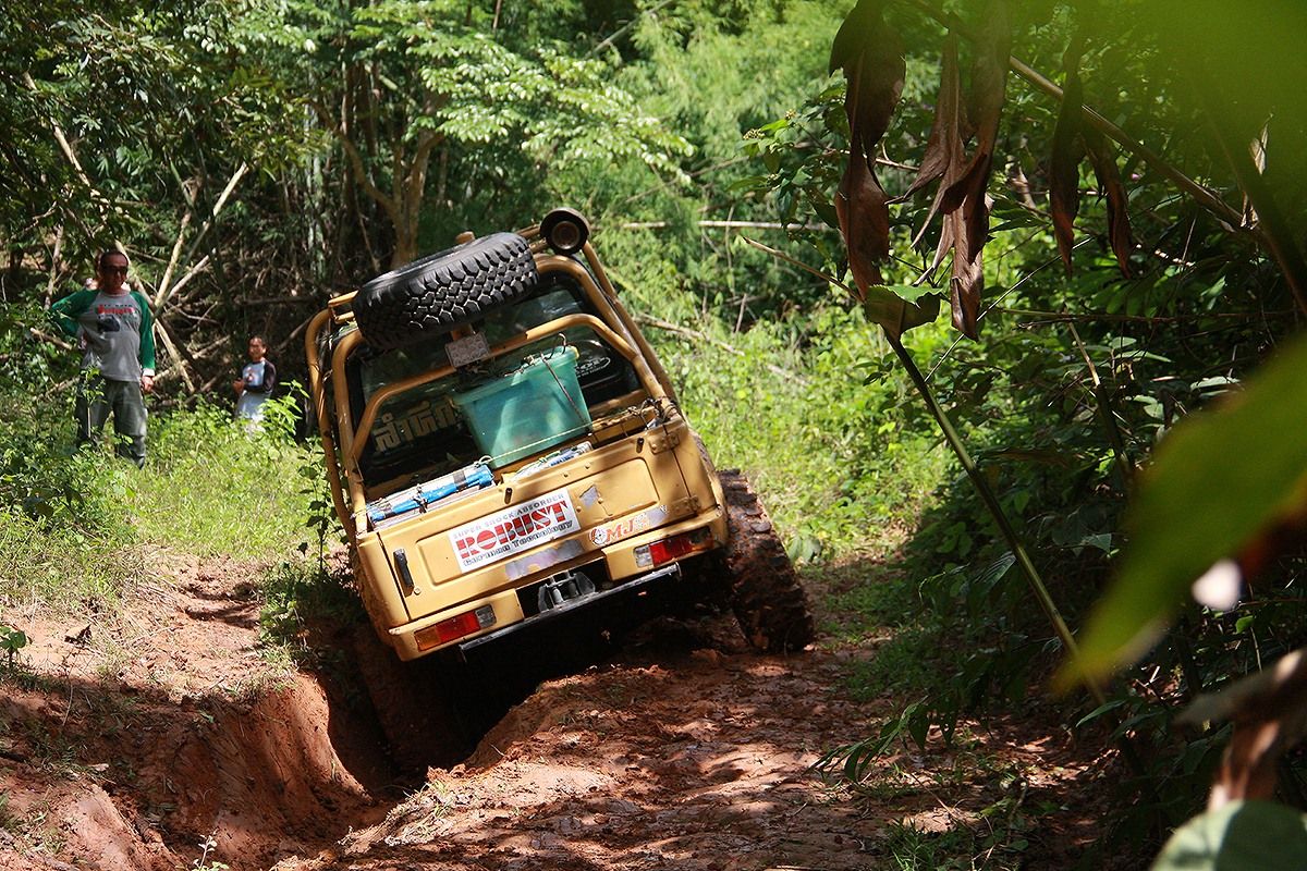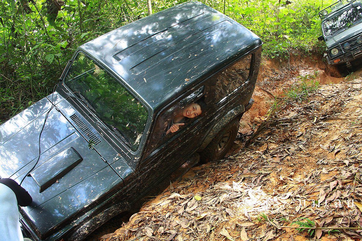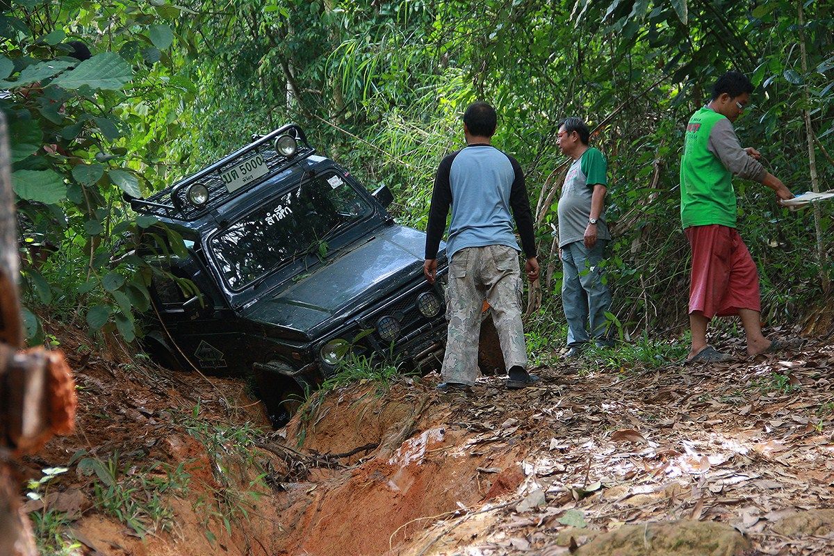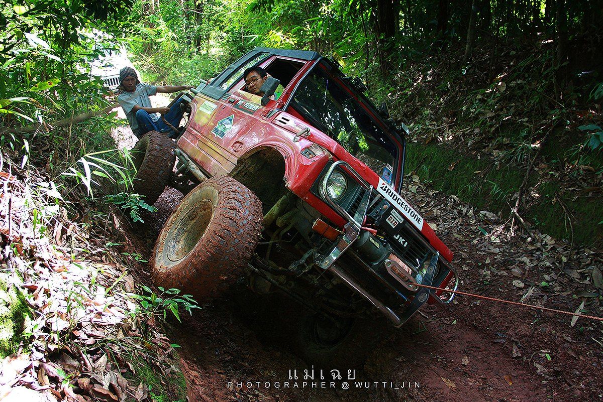 พอพ้นทางหิน ทีนี่เราก็เจอกับเส้นทางที่เล็ก และเป็นดินหนังหมู สลับกับร่องลึก ถ้าใครควบคุมรถไม่อยู่ก็ต้องห้อยโหนกันตลอดทางแบบนี้เลย