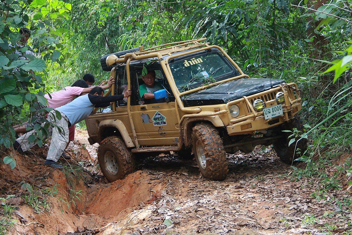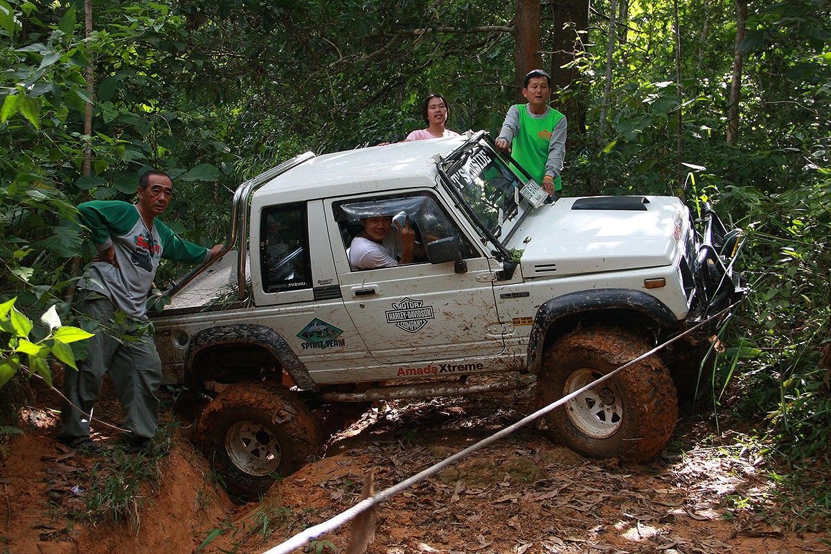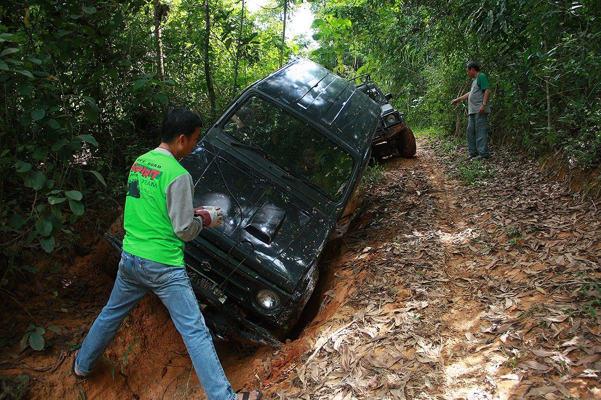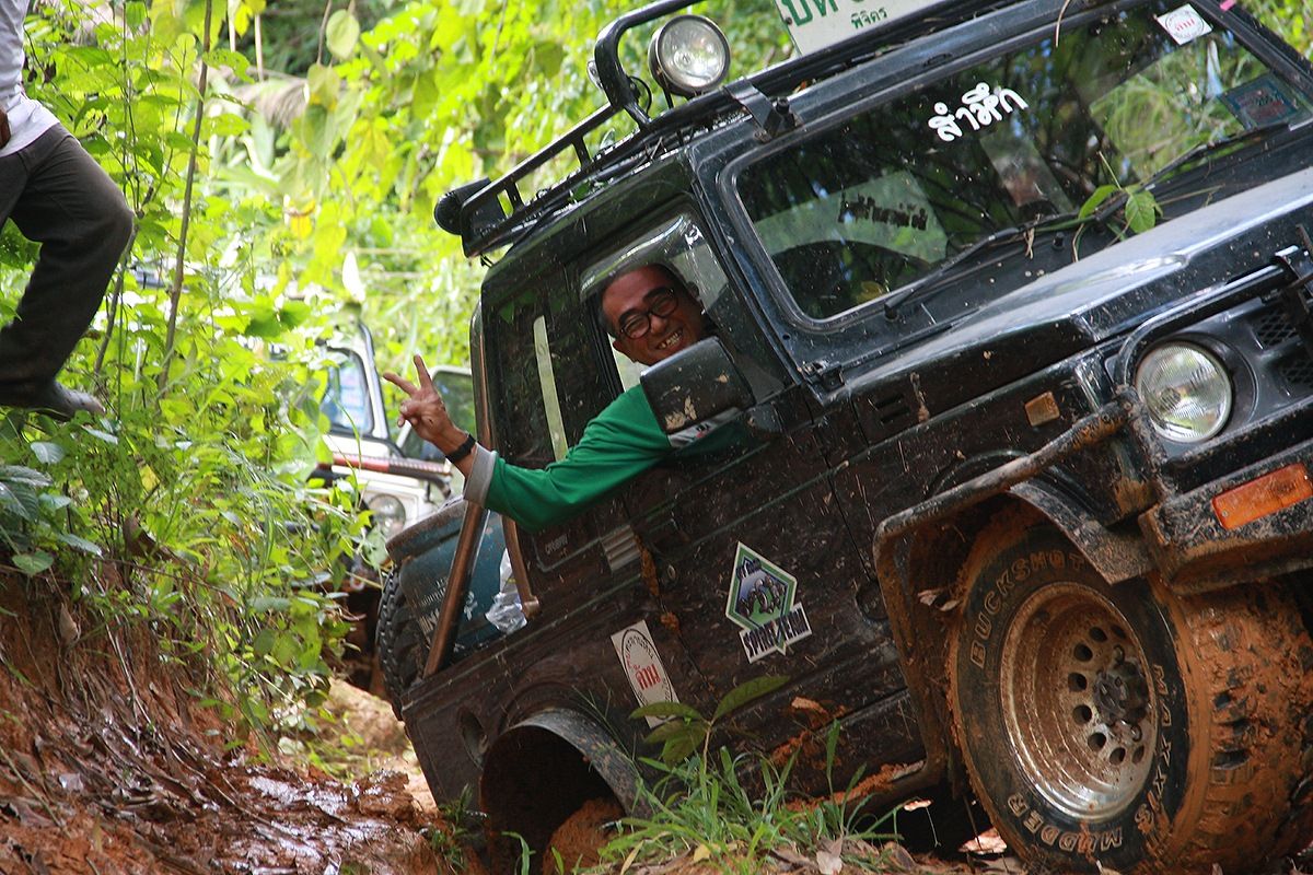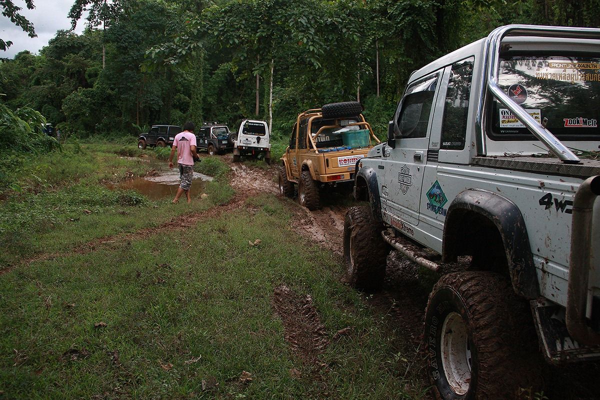 พอพ้นทางหิน ทีนี่เราก็เจอกับเส้นทางที่เล็ก และเป็นดินหนังหมู สลับกับร่องลึก ถ้าใครควบคุมรถไม่อยู่ก็ต้องห้อยโหนกันตลอดทางแบบนี้เลย