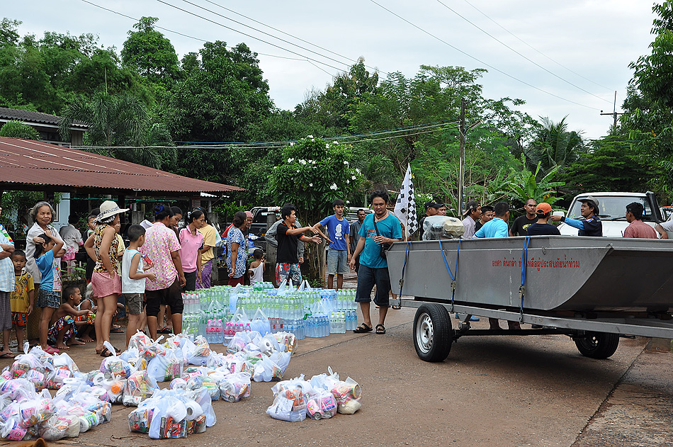 ชาวบ้านที่เดือดร้อน ร่วมแรงร่วมใจกันขนของลงมารวมกันไว้ก่อน