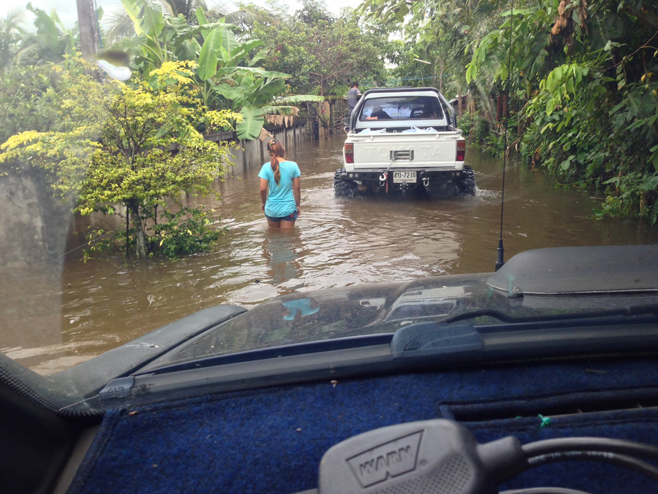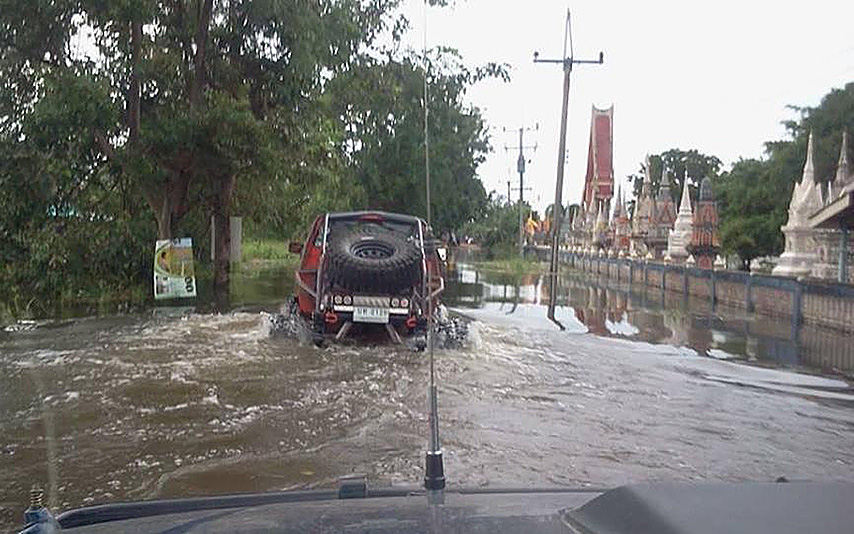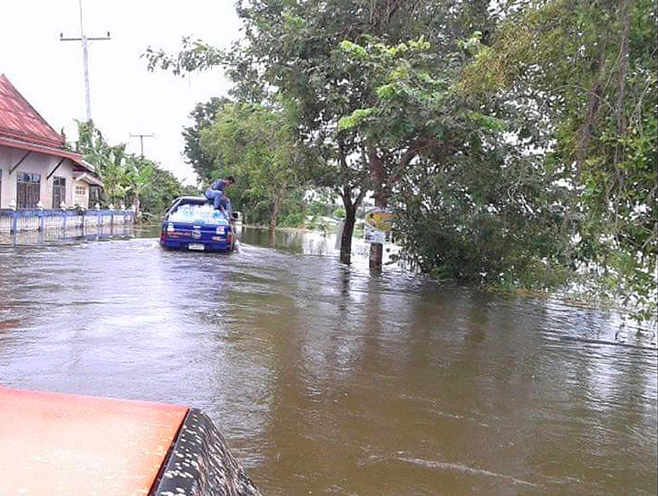เข้าเขตหมู่บ้านแล้วต้องขับช้าๆ กับระดับน้ำ