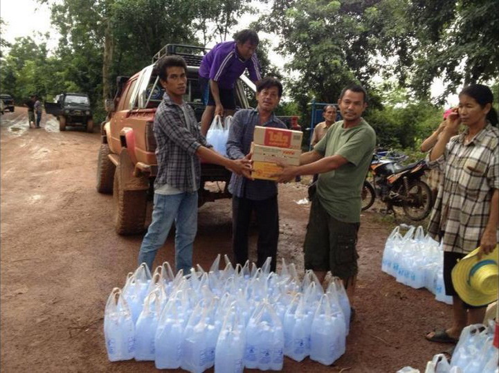 ของลงรวมไว้ แล้วให้ผู้ใหญ่แต่ละหมู่บ้านนำของแจกจ่ายลูกบ้านที่ประสบภัยต่อไป