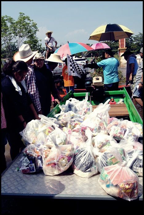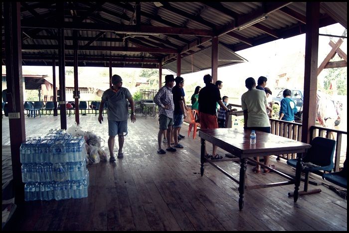 เนื่องจากของที่ได้รับบริจาคมานั้นเยอะมากจิงๆๆๆๆ เราจึงแบ่งไว้ให้ผู้ใหญ่บ้านนำไปแจกจ่ายให้ลูกบ้านต่อที่ศาลาไม้นี้ และเราจะได้ออกเดินทางต่อเพื่อไปหมู่บ้านต่อไปคร้าบบบบ
