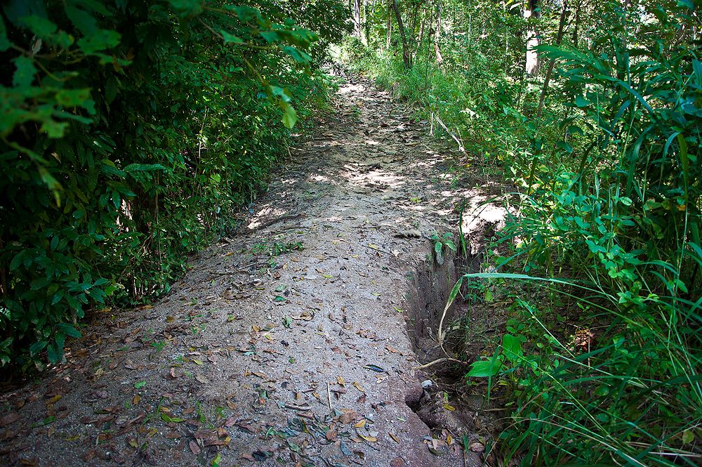 สภาพเส้นทาง รอยเหยียบ ของล้อไม่มีเลย น้ำเซาะทางพอดีล้อเป๊ะ คันสุดท้าย ล้อลงหลุมเลย